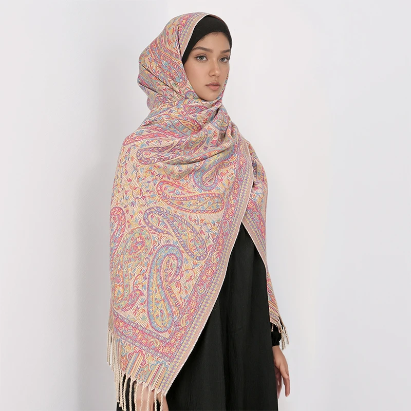 شال كشميري للنساء ، وشاح شتوي دافئ ، حجاب ، سميك ، رأس ورقبة ، بطانية فاخرة ، بشمينا ، بيزلي مطبوع ، جديد ، لف ، فولارد