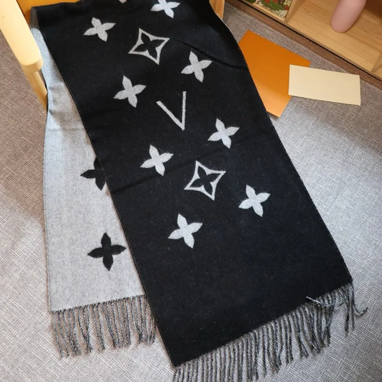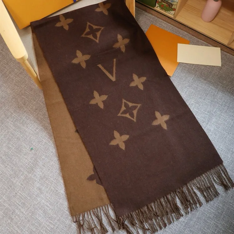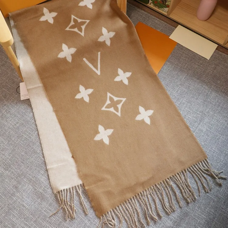 الكلاسيكية الكشمير على الوجهين وشاح المرأة عالية الجودة مع وشاح للرقبة شتاء دافئ شال ثنائي الاستخدام طويل الحليب الشاي اللون